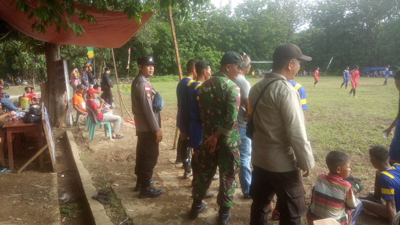 Personel Polsek Siding Polres Bengkayang Polda Kalbar melakukan kegiatan pengamanan turnamen Sepak Bola Piala Hut RI Ke-77 desa Siding digelar lapangan desa Siding kecamatan Siding kabupaten Bengkayang Provinsi Kalbar, Minggu (31/07/2022).