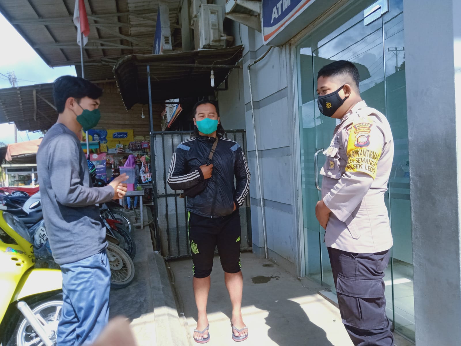 Saat diwawancarai Personil Bhabinkamtibmas Polsek Ledo Briptu Tan Deden mengatakan “Kami datangi warga masyarakat yang sedang berkumpul di warung kopi dan tempat-tempat keramaian, untuk menanyakan sudah vaksin atau belum”,ucap Briptu Tan Deden.
