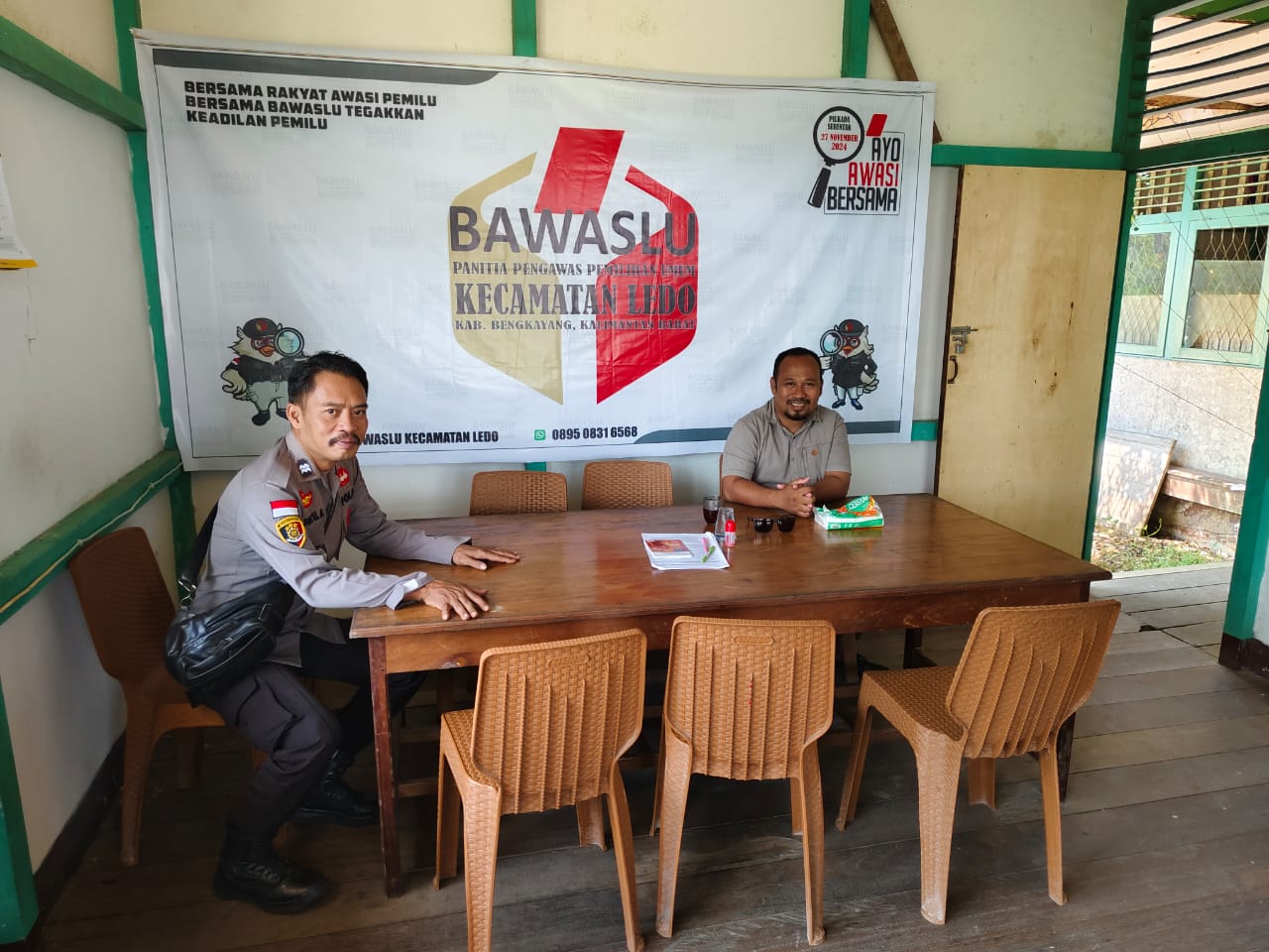 Ledo, Bengkayang – Personel Polsek Ledo Polres Bengkayang Aiptu Agus Ulil Albab bersama Aipda Herliansyah melaksanakan giat patroli dialogis menghadapi Peilkada Serentak 2024 mendatang. Salah satu giat dilakukan melaksanakan patroli ke Kantor Panwascam Ledo, Sabtu (7/9/2024) pagi.