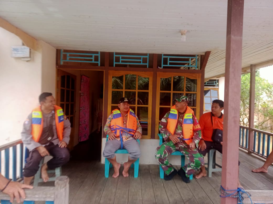 Bripka Agus Srinaldi menyambangi warga yang terkena banjir guna memberikan himbauan kamtibmas dan selalu waspada.