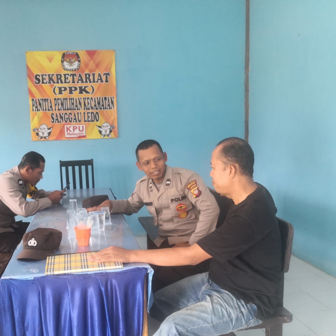 “Tak hanya mendengarkan keluhan dari masyarakat saja, namun tujuan kami melaksanakan kegiatan Jum’at Curhat bersama Kasi Trantib Kecamatan Sanggau Ledo ini juga dalam rangka berkoordinasi terkait kedatangan logistik pemilu yang sudah berada di kantor sekretariat PPK untuk memastikannya agar tetap aman dan terjaga”. Jelas Kanit Binmas.