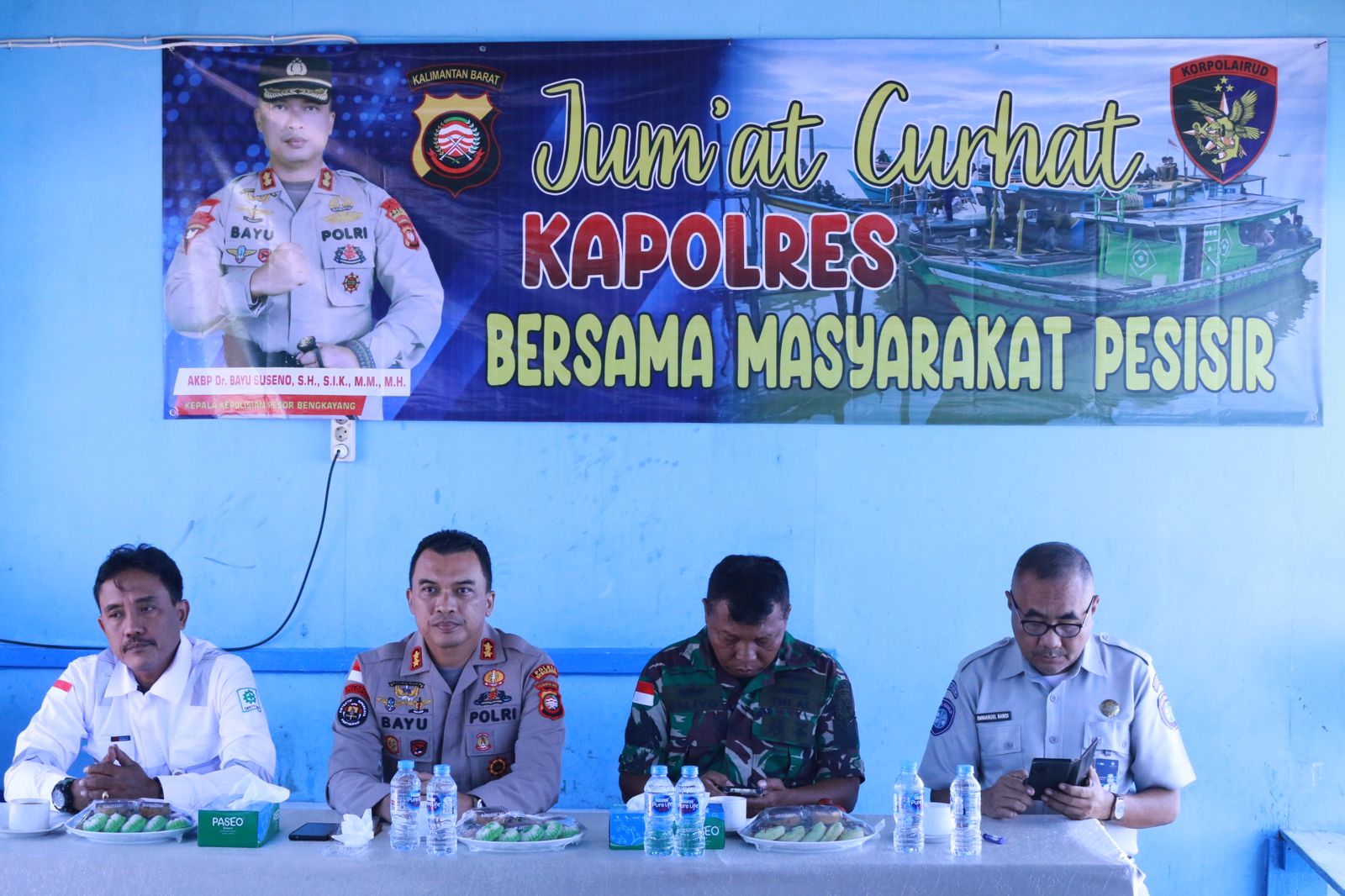 Kapolres Bengkayang AKBP Dr. Bayu Suseno, S.H., S.I.K., M.M., M.H. yang pada kesempatan itu memimpin jalannya Jum’at Curhat mengucapkan terima kasih kepada pihak yang telah hadir dan mengungkapkan betapa pentingnya pembentukan kelompok usaha kapal penumpang.