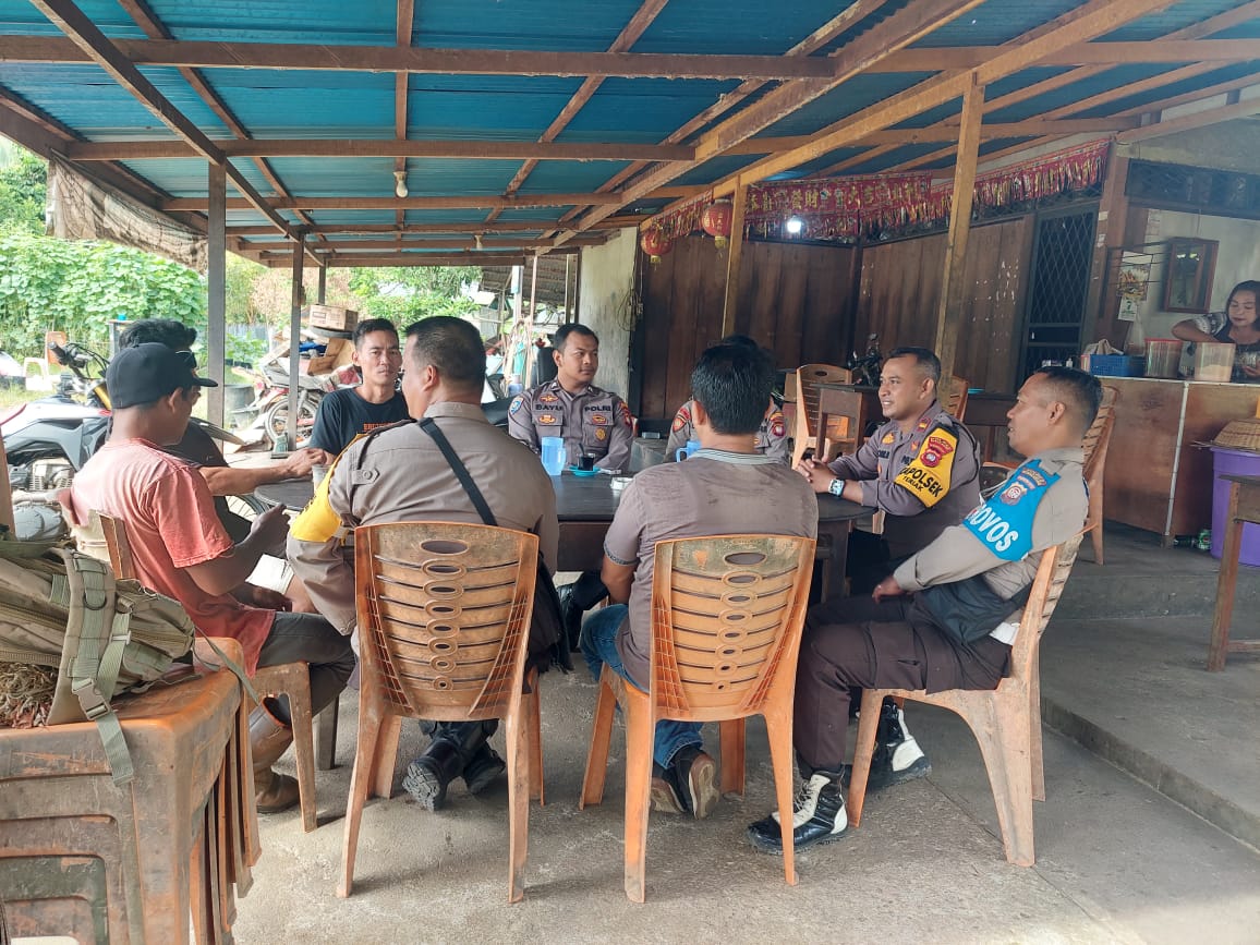 Polsek Teriak Polres Bengkayang Polda kalbar dalam kegiatan “Jumat Curhat” dengan Melakukan kegiatan sambang kepada warga saat berada di warung kopi Sdr. ALIM Jum’at (08 Desember 2023)
