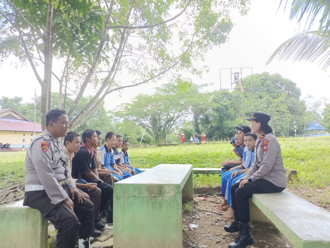Tampak Pelajar dari SMP Negeri 1 Sungai Betung sangat antusias menyambut kedatangan Kapolsek serta berinteraksi bersama Kapolsek.