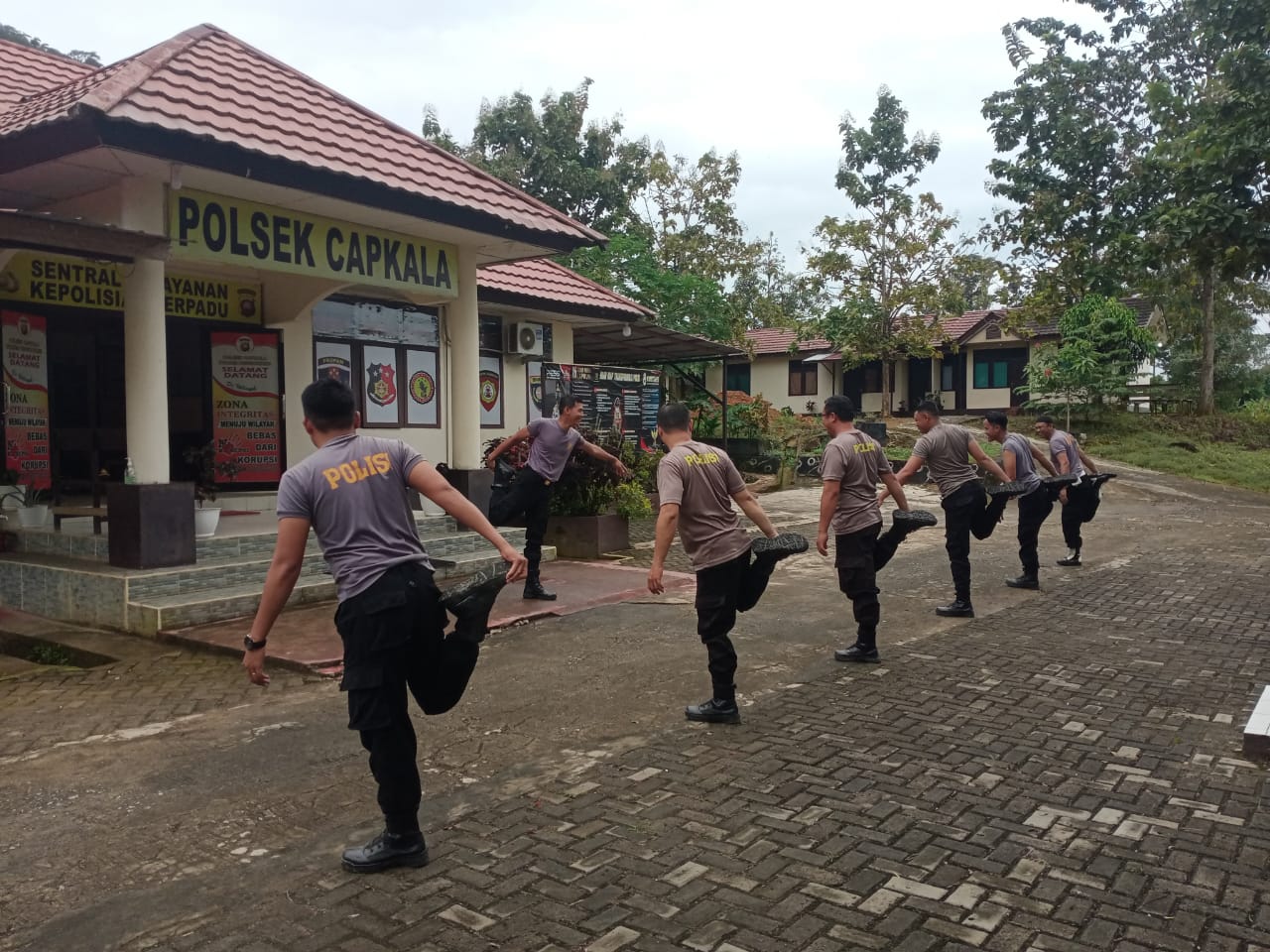 Giat olahraga dimulai dengan jalan santai diseputaran Mapolsek Capkala dan jalan raya raya Capkala kemudian dialanjutkan dengan peregangan serta gerakan olahraga bersama.