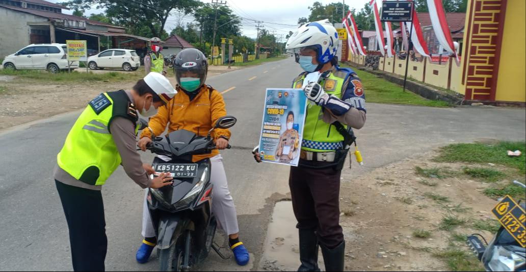 Hal itu pun dilakukan sebagai pengingat agar masyarakat khususnya pengguna jalan yang melintas di wilayah hukum Polres Bengkayang selalu ingat akan protokol kesehatan (prokes).
