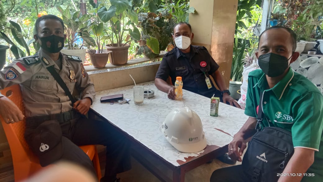 Guna menyampaikan pesan Kamtibmas maupun imbauan disiplin protokol kesehatan dimasa Pandemi Covid19 saat ini, selaku Kanit Binmas Polsek Ledo melaksanakan sambang dengan petugas keamanan / Satpam Perusahaan yang ada di wilayah Kecamatan Ledo Kab. Bengkayang, Selasa (12/10/2021).