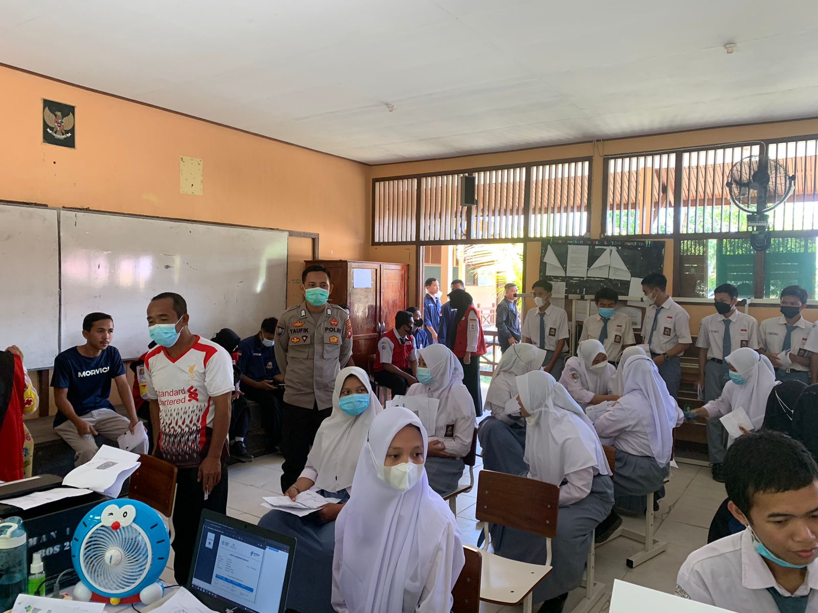 Kanit Binmas Polsek Sungai Raya Kepulauan Polres Bengkayang Polda Kalbar Bripka Taufik melaksanakan monitoring dan pemantauan pelaksanaan vaksinasi Covid-19 yang berlokasi di Sman N 01 Sungai Raya Kepulauan Desa Sungai Raya Kecamatan Sungai Raya Kepulauan, Senin Pagi(25/10/2021).