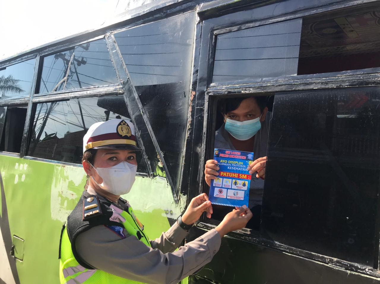 “Kegiatan ini bertujuan untuk memberikan himbauan kepada masyarakat, agar tetap waspada dan tetap lakukan prokes cegah penyebaran Covid-19,” kata Ipda Pariani