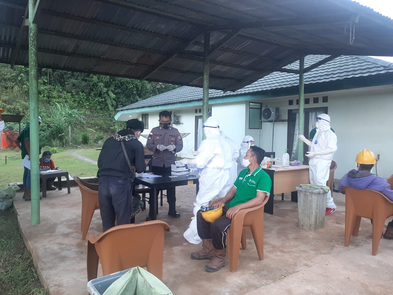 Tim Tracer Puskesmas Kecamatan Ledo yang didampingi Kanit Samapta Polsek Ledo melakukan tracing terhadap orang-orang yang melakukan kontak erat dengan warga yang terkonfirmasi positif Covid-19 di Desa Suka Jaya kecamatan Ledo.