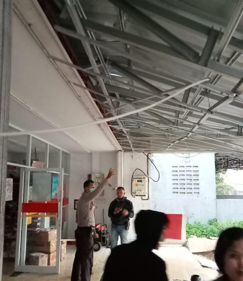 Petang tadi jam 16.49 Wib Kanopi Alfamart ambruk yang berada di dusun Jawa desa Lembang kecamatan Sanggau Ledo kabupaten Bengkayang, Rabu 16 Februari 2022
