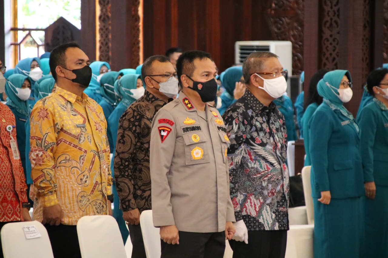 PONTIANAK, KALBAR – Kapolda Kalimantan Barat Irjen Pol Drs. Suryanbodo Asmoro, M.M. beserta Ketua Bhayangkari Daerah Kalimantan Barat Ny. Ratna Suryanbodo Asmoro yang juga Selaku Ketua Pengurus Yayasan Kemala Bhayangkari Daerah Kalbar menghadiri Peringatan Hari Kesatuan Gerak PKK Ke-50 Tingkat Provinsi Kalbar Tahun 2022 yang bertempat di Pendopo Gubernur Kalbar, Jum’at (5/8).