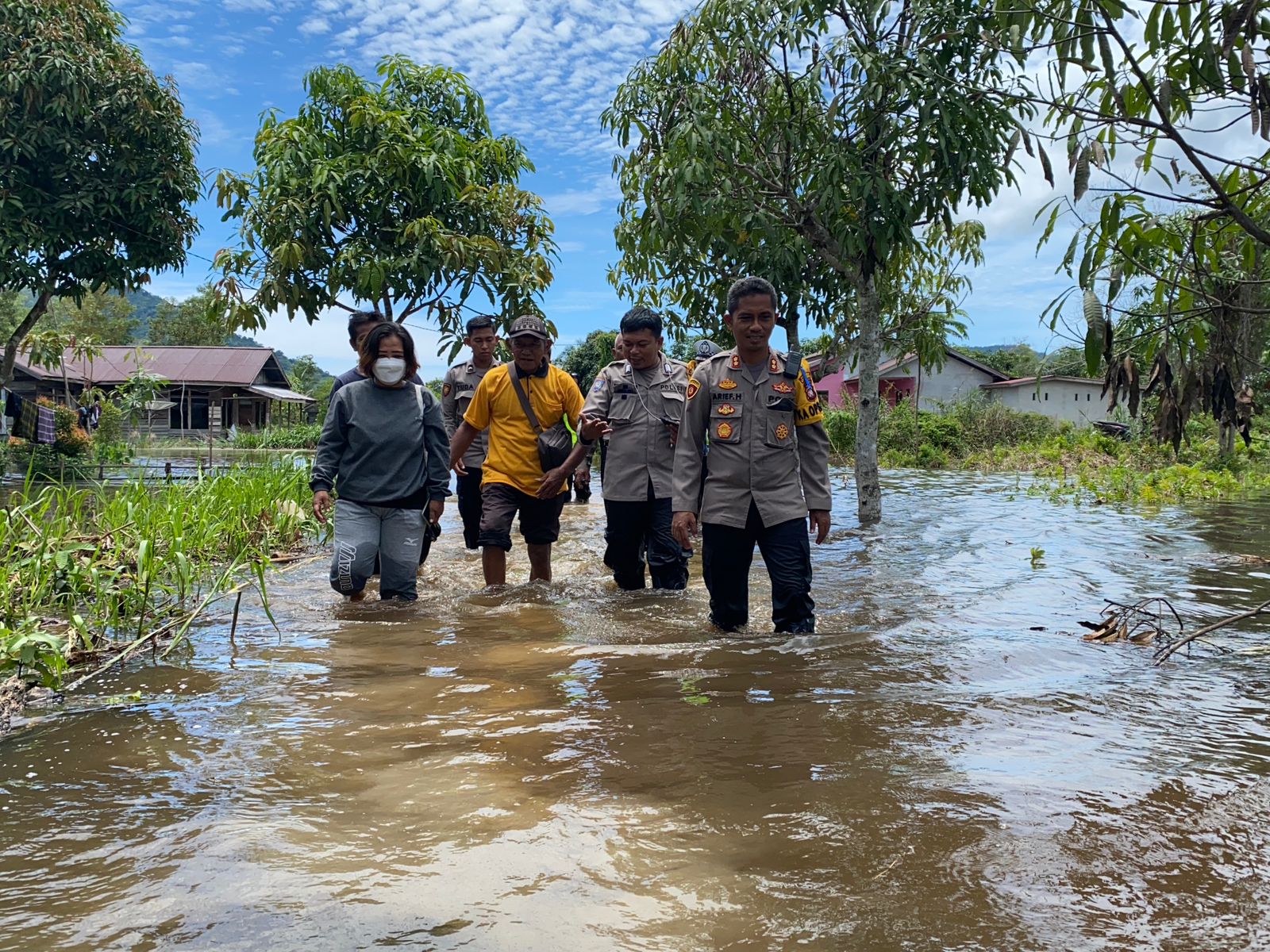 Sebagai bentuk kepedulian terhadap sesama, Kapolres tidak tanggung-tanggung terjun langsung kelokasi banjir dengan seragam dinasnya beserta dengan yang lainnya.