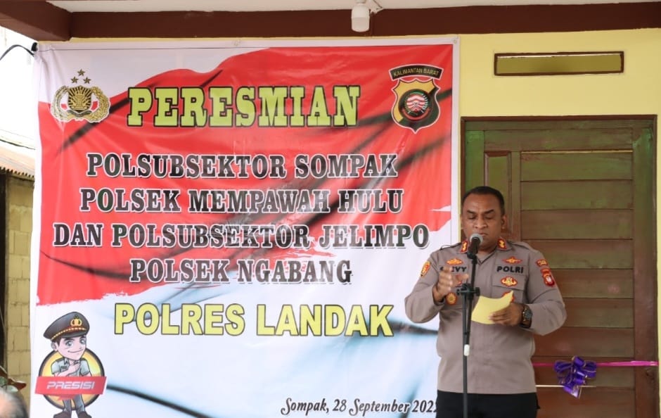 Polres Landak Polda Kalbar sihumas Kapolres Landak, AKBP. Stevy Frits Pattiasina, S.IK,SH.MH meresmikan Polsubsektor Sompak Polsek Mempawah Hulu dan Polsubsektor Jelimpo Polsek Ngabang Kabupaten Landak Kalimantan Barat pada Rabu (28/9/2022).