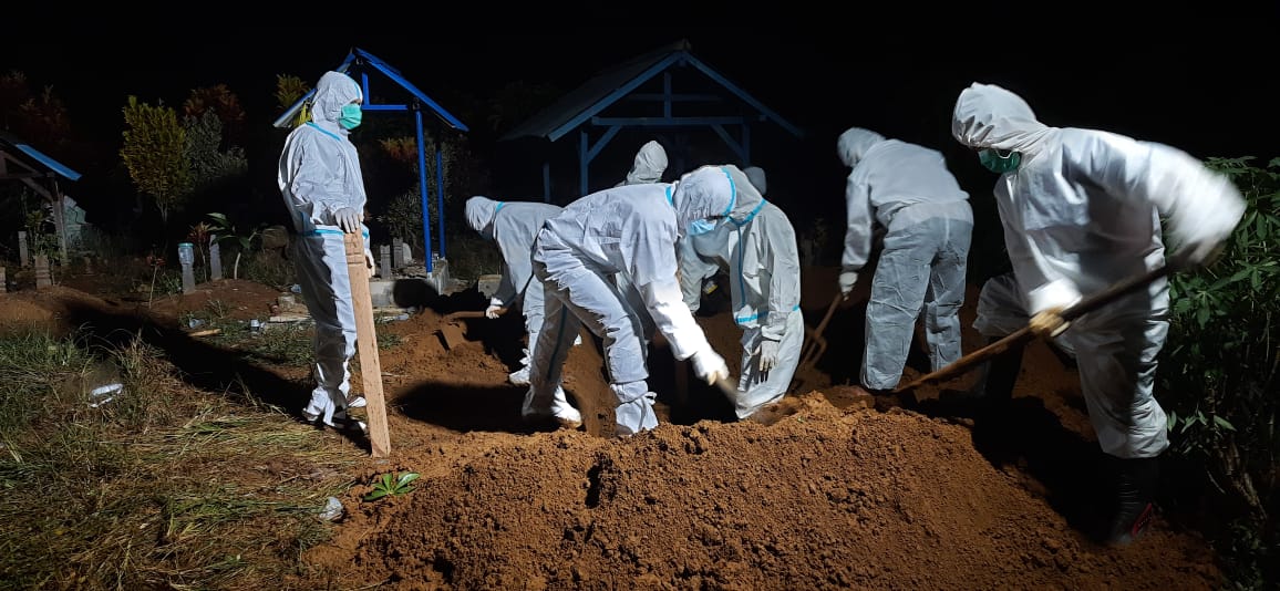 “Saya dan anggota berinisiatif membantu pemakaman, karena sesuai ketentuan jenazah harus segera dimakamkan dengan menerapkan protokol kesehatan. Kami semua mengenakan APD dalam melaksanakan pemakaman, dan semua berjalan aman,” tegasnya.