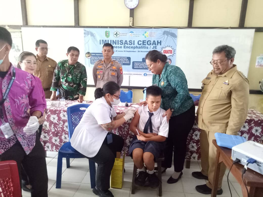 Vaksinasi JE (Japanese Encephalitis) yang dipimpin langsung Enny Nurmauli Simbolon tersebut penting dilakukan. “Kegiatan tersebut dalam rangka pencegahan peradangan otak yang penularannya melalui gigitan nyamuk”. Ungkap Kapolsek Iptu Suyatno.Disamping menghadiri launching vaksinasi JE, pihaknya juga memerintahkan kepada anggotanya untuk memberikan pendampingan guna menjamin terciptanya rasa aman.