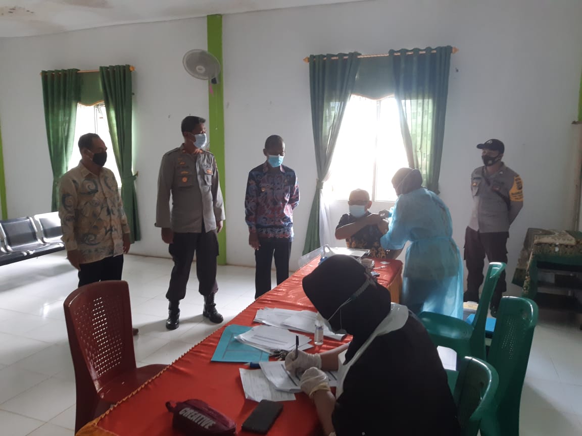 Polres Bengkayang – Kapolsek Ledo Polres Bengkayang Polda Kalbar beserta anggota melaksanakan kegiatan pemantauan vaksinasi massal yang dilaksanakan di Puskesmas Ledo, Jumat (18/06/2021).