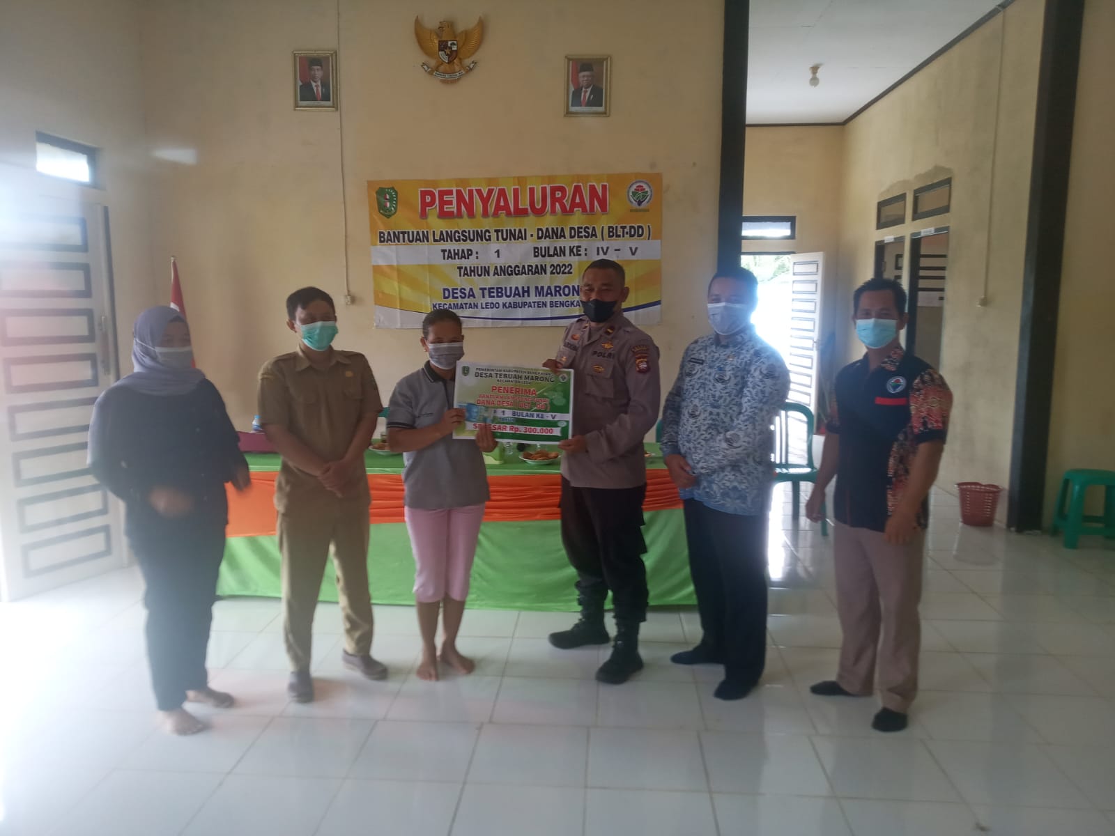 Hadir dalam kegiatan tersebut Kapolsek Ledo IPDA M. Rokhim, SH, Kanit Intelkam Aipda Honi Suryo Prayogo, Sekcam Ledo Andreas Apendi, SE, Sekdes Tebuah Marong Ahmad Sobirin, Ketua BPD, Pendamping Desa, dan Linmas serta warga penerima BLT DD tahap I bulan ke 4 dan ke 5.