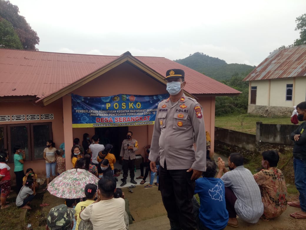 Vaksinasi covid19 kali ini di tujukan bagi warga Desa Serangkat dengan target 300 orang, adapun pelaksanaan vaksinasi covid19 dengan melibatkan pegawai puskesmas Kecamatan Ledo sebagai tim ahli untuk melakukan penyuntikan sementara dari Anggota Polsek Ledo bertugas untuk mendata dan menginput identitas warga yang melaksanakan vaksinasi covid19 serta melakukan pengamanan agar pelaksanaa vaksinasi covid19 berjalan lancar, aman dan situasi yang kondusif