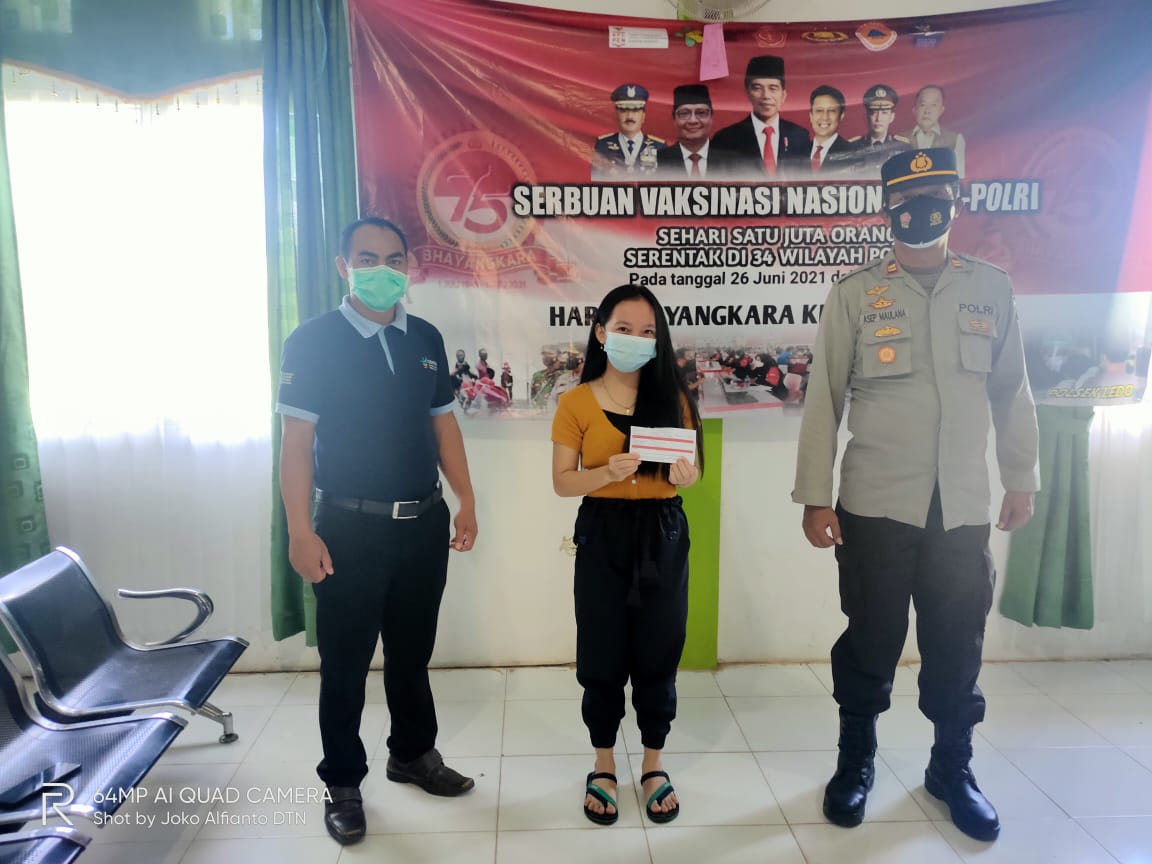 Polres Bengkayang – Kapolsek Ledo dan jajaraanya melaksanakan monitoring dan pengamanan selama pelaksanaan vaksinasi massal di Puskesmas Ledo.