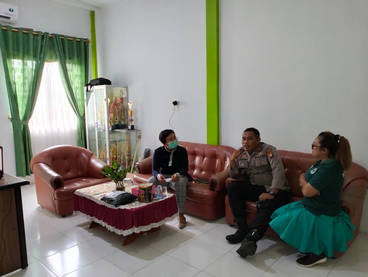 Kapolsek Ledo Polres Bengkayang Polda Kalbar Ipda M. Rokhim S.H Lakukan Koordinasi Bersama kepala Puskesmas Ledo dalam rangka vaksinasi Serentak menyambut Hut Bhayangkara yang ke- 76, Sabtu (11/06/2022).