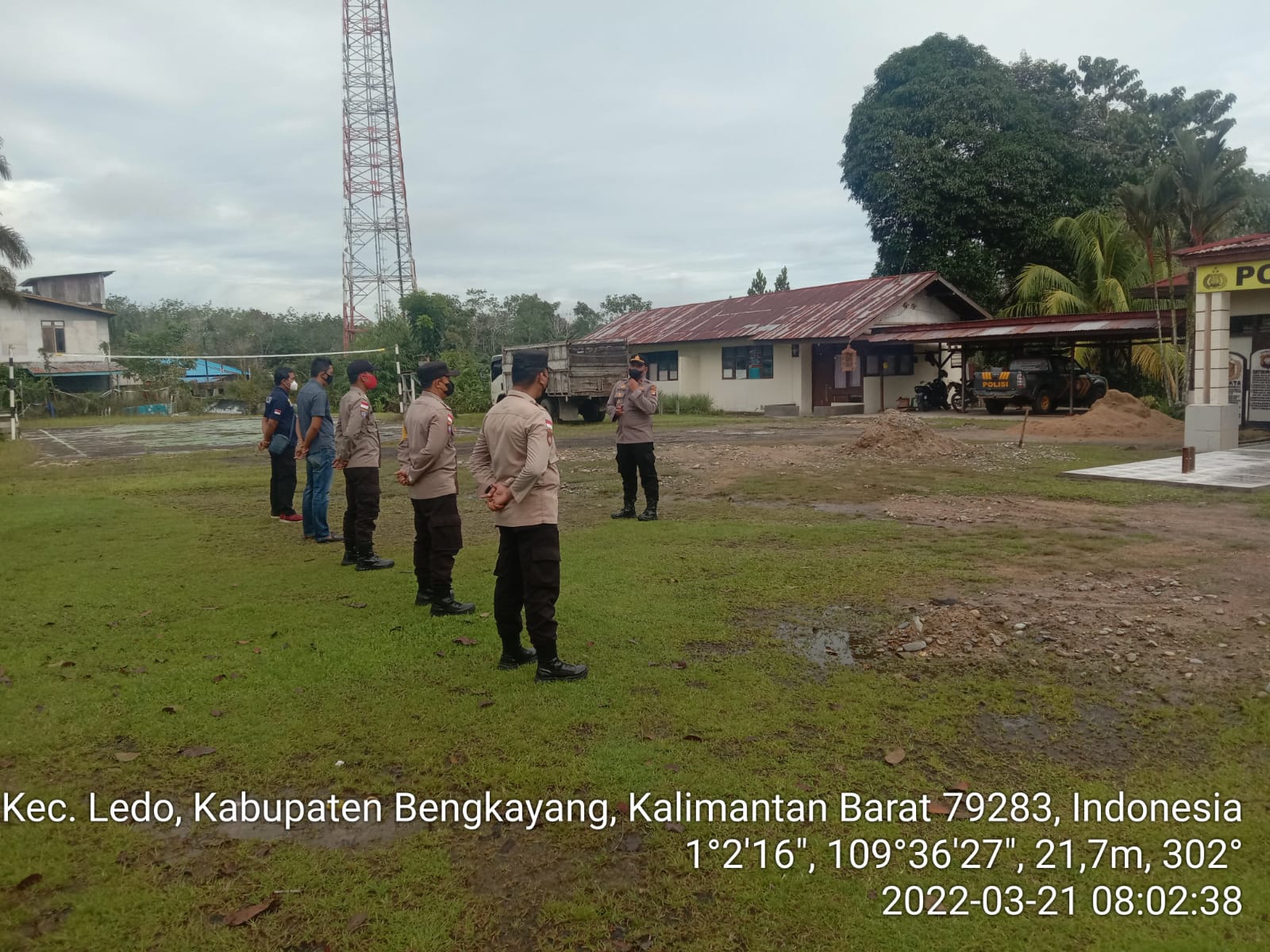 Personel Polsek Ledo Polres Bengkayang Polda Kalbar melaksanakan kegiatan apel pagi di halaman Mapolsek Ledo, Senin (22/03/2022).