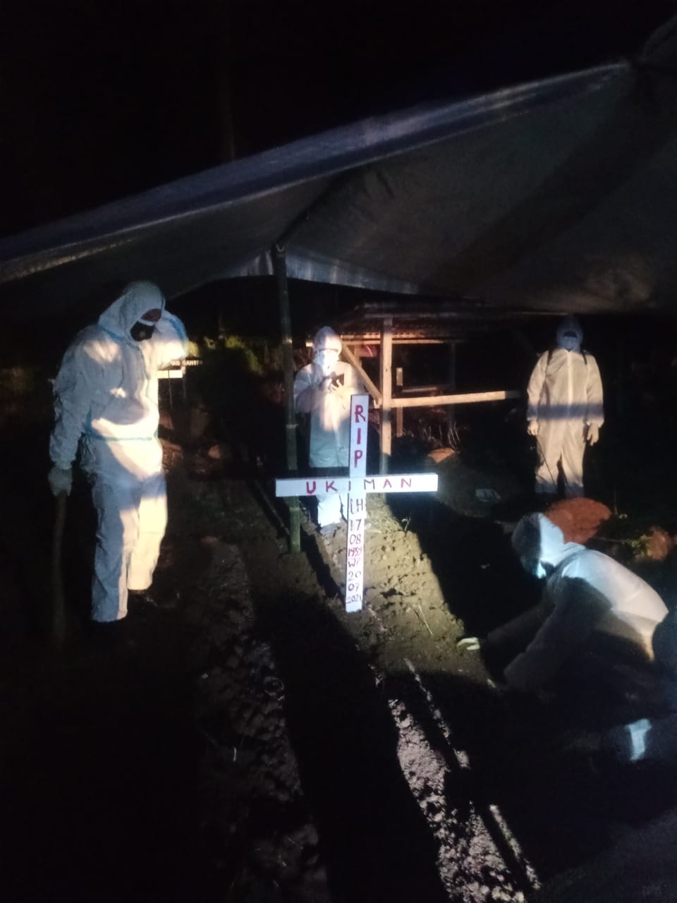 Kapolsek menambahkan,” bahwa pemakaman kita laksanakan dengan tetap mematuhi protokol kesehatan dengan menggunakan APD kepada para petugas yang melakukan proses pemakaman yaitu dari warga sekitar yang sudah terbentuk satgas Covid19.,”