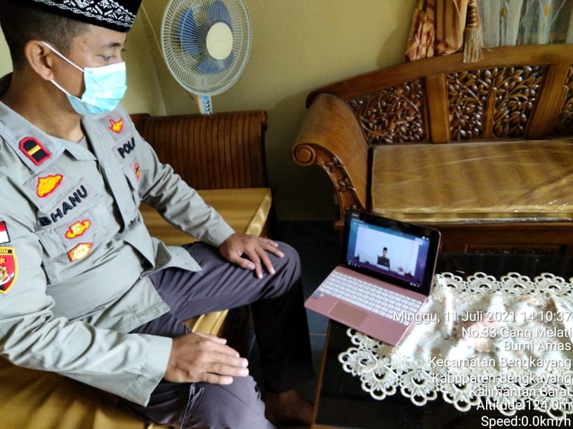 Kapolsek Sanggau Ledo Ipda Dwiyanto Bhanu Susilo, S.IP. mengikuti PFH (#PrayFromHome) secara virtual di Rumah Jabatan Kapolsek Sanggau Ledo, Minggu (11/7).