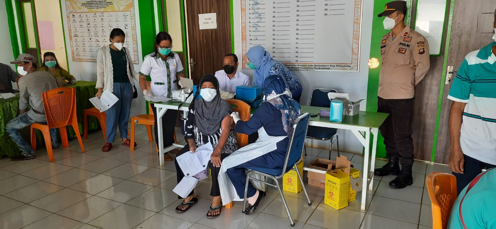 Dengan total peserta Vaksin sebanyak 29 orang yang meliputi; Dosis 3 Bosster Lansia pfizer, Dosis 1 Pfizer, Dosis 1 Sinovac, dan Dosis 2. Pelayanan Vaksin Covid-19 dilakukan oleh nakes dan tim Vaksinator Puskesmas Sanggau Ledo