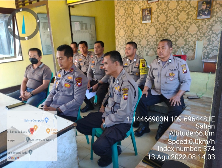 Kapolsek Sanggau Ledo Ipda Dwiyanto Bhanu Susilo, S.I.P., memimpin anggotanya untuk mengikuti kegiatan rapat online melalui aplikasi Zoom Meeting pada Sabtu (13/08/2022).