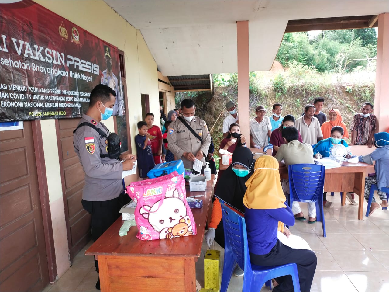 Sanggau Ledo – Dalam rangka mensukseskan program pemerintah vaksinasi Covid-19 sebagai upaya percepatan penanganan Covid-19. Kali ini Polri khususnya Polsek Sanggau Ledo jajaran Polres Bengkayang Polda Kalbar , melaksanakan vaksinasi di Desa Danti, Kec.Sanggau Ledo, Kab.Bengkayang. Jumaat (26/11/2021).