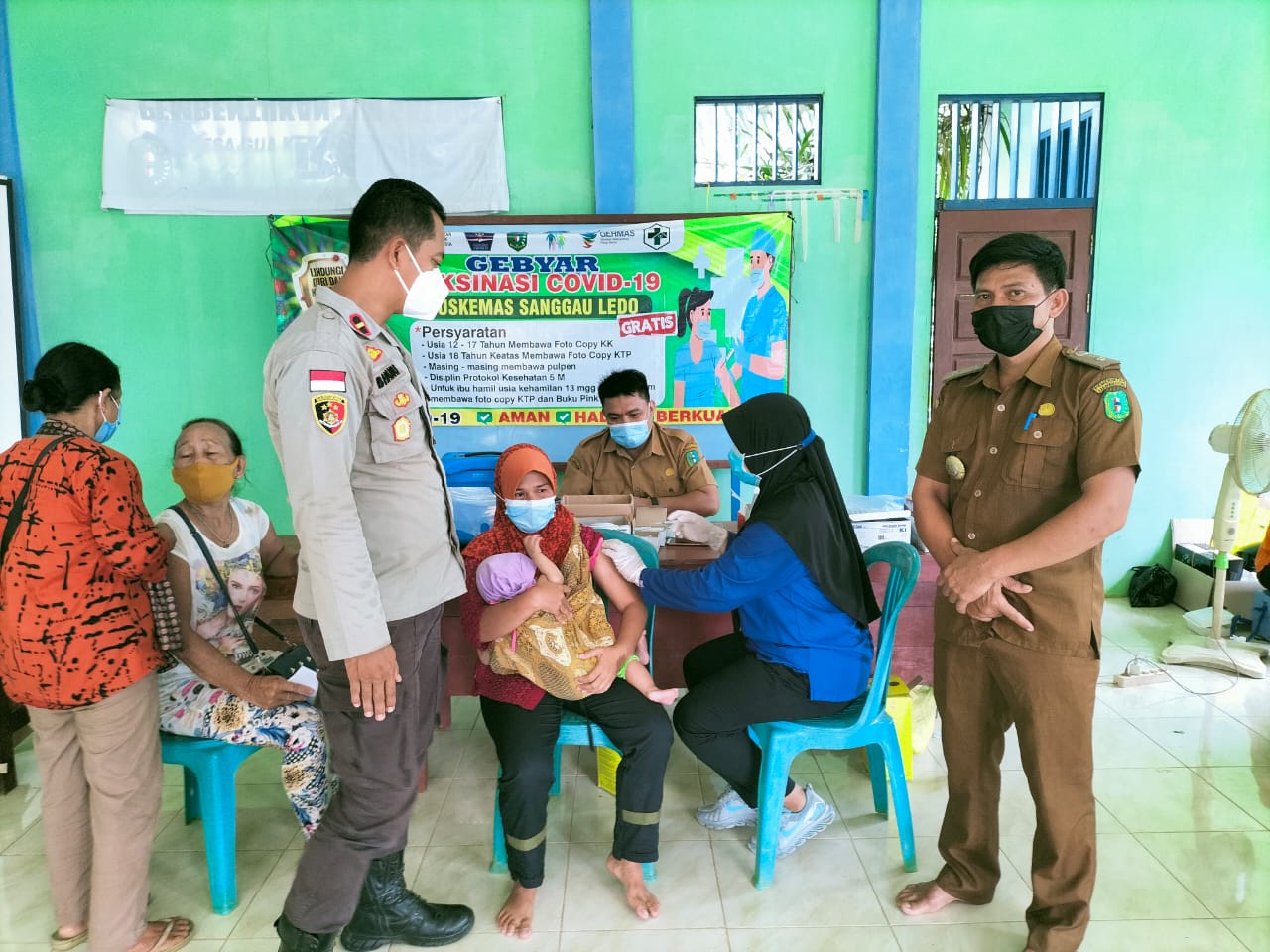 Sanggau Ledo – Dalam rangka mensukseskan program pemerintah vaksinasi Covid-19 sebagai upaya percepatan penanganan Covid-19. Polsek sanggau ledo jajaran Polres Bengkayang Polda Kalbar, dipimpin langsung oleh Kapolsek sanggau ledo Ipda Dwiyanto Bhanu Susilo,S.I.P. pengamanan dan monitoring yang dilakaukan kali ini di kantor Desa Bange yang berlokasi di Ds.Bange Kec.Sanggau Ledo Kab.Bengkayang, Selasa (02/11/2021 sekitar pukul 09.00 Wib.
