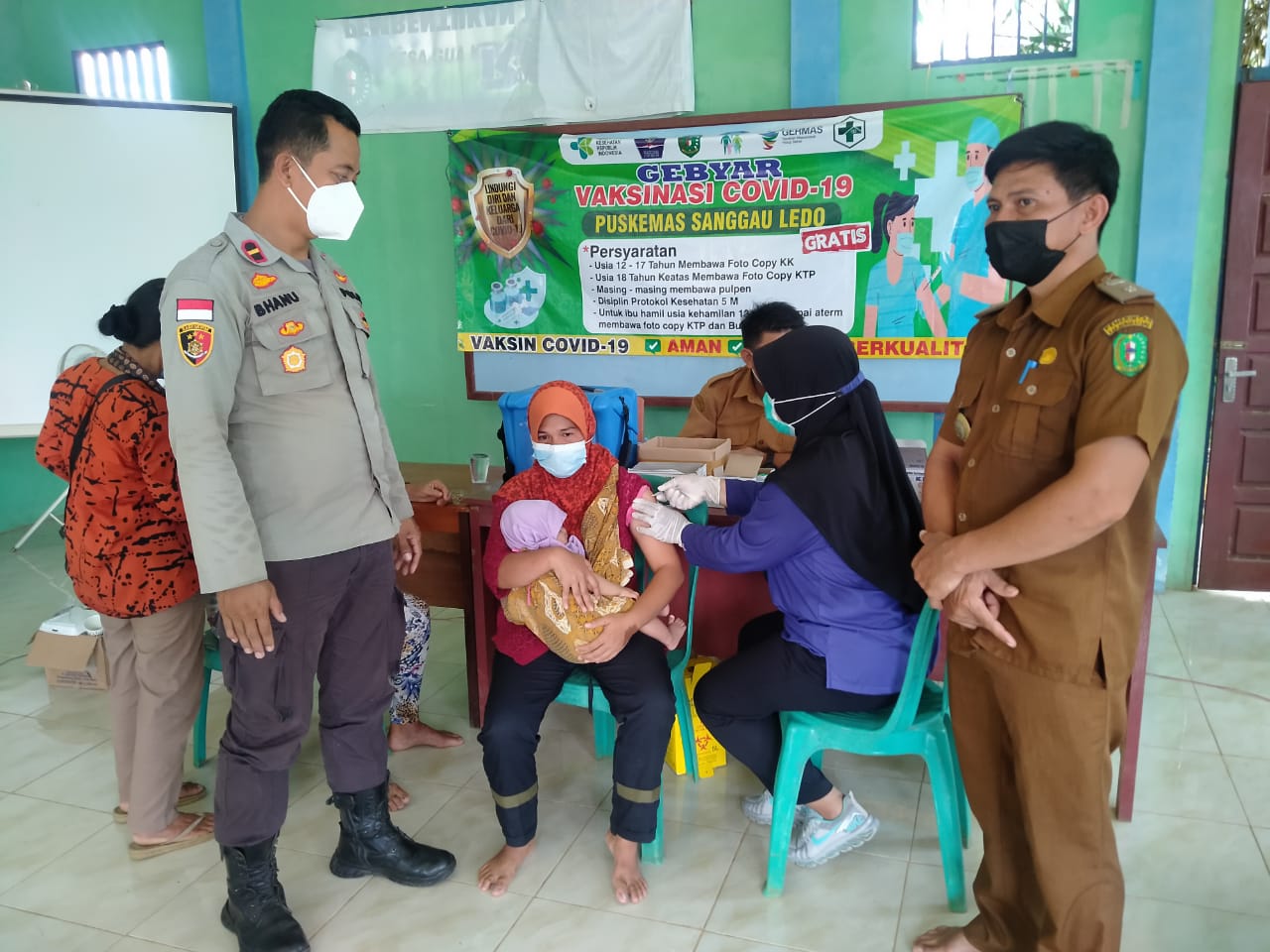 Sanggau Ledo – Dalam rangka mensukseskan program pemerintah vaksinasi Covid-19 sebagai upaya percepatan penanganan Covid-19. Polsek sanggau ledo jajaran Polres Bengkayang Polda Kalbar, dipimpin langsung oleh Kapolsek sanggau ledo Ipda Dwiyanto Bhanu Susilo,S.I.P. pengamanan dan monitoring yang dilakaukan kali ini di kantor Desa Gua yang berlokasi di Ds.Gua Kec.Sanggau Ledo Kab.Bengkayang, Senin (25/10/2021 sekitar pukul 09.00 Wib.