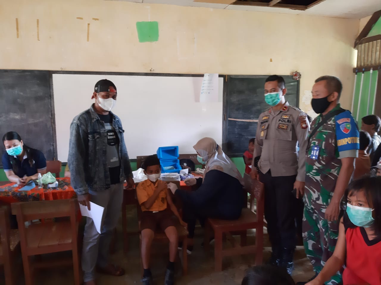 Terjadwal bertempat di SD 12 desa Lembang Kecamatan Sanggau Ledo dilaksanakannya Vaksinasi anak usia6-11 tahun, Sabtu 12 Februari 2022
