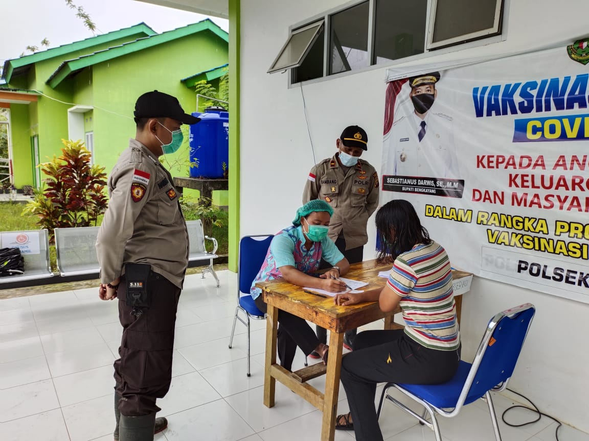 Kapolsek Siding Polres Bengkayang Ipda Bambang Rudiyanto didampingi para personil lainnya meninjau langsung pelaksanaan vaksinasi yang dilaksanakan di Puskesmas Siding Kabupaten Bengkayang Provinsi Kalbar.