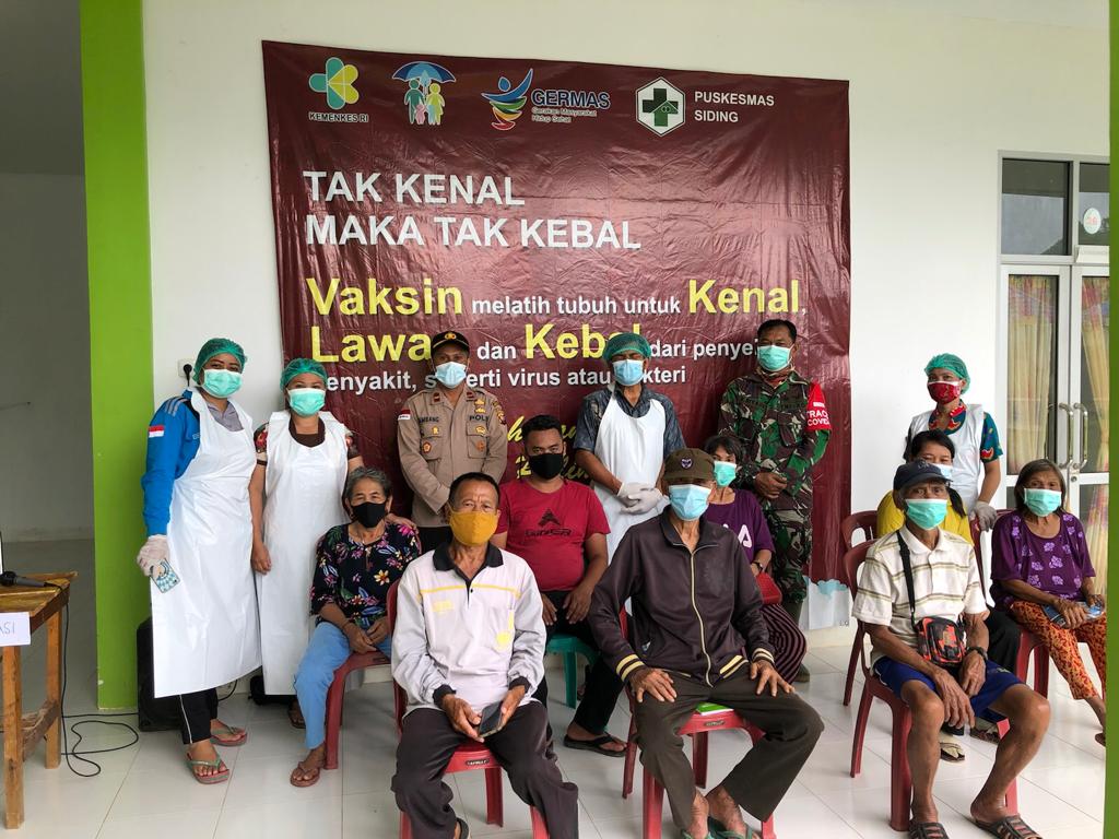 Dalam rangka Hari Bhayangkara ke 75 tahun 2021 dan mendukung program percepatan pemulihan vaksinasi Covid-19, Polsek Siding bersinergi dengan Puskesmas Siding serta Gugus Tugas Covid-19 melaksanakan kegiatan vaksinasi kepada warga diwilayah hukum Polsek Siding.