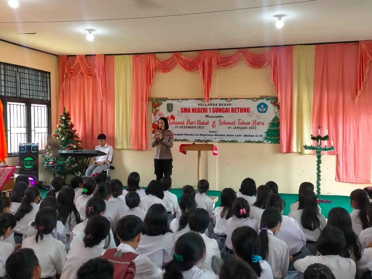 Senin, 9 Januari 2023 09:30 wib Kapolsek Sungai Betung IPDA Pariani, SH bersama Camat Sungai Betung menghadiri Ibadah Natal Bersama di sekolah SMA Negeri 1 Sungai Betung yang digelar di Aula SMA Negeri 1 Sungai Betung Desa Suka Maju Kecamatan Sungai Betung, Senin (09/01/2023).