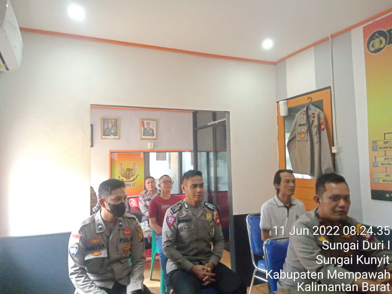 11/06/2022, Pada hari Sabtu Kapolsek IPDA ARIJITO TRI SUSANTO HUTAGAOI, S.H., beserta Personil Polsek Sungai Raya melaksanakan Meeting Zoom situasi Kamtibmas diruangan Kapolsek Sungai Raya.