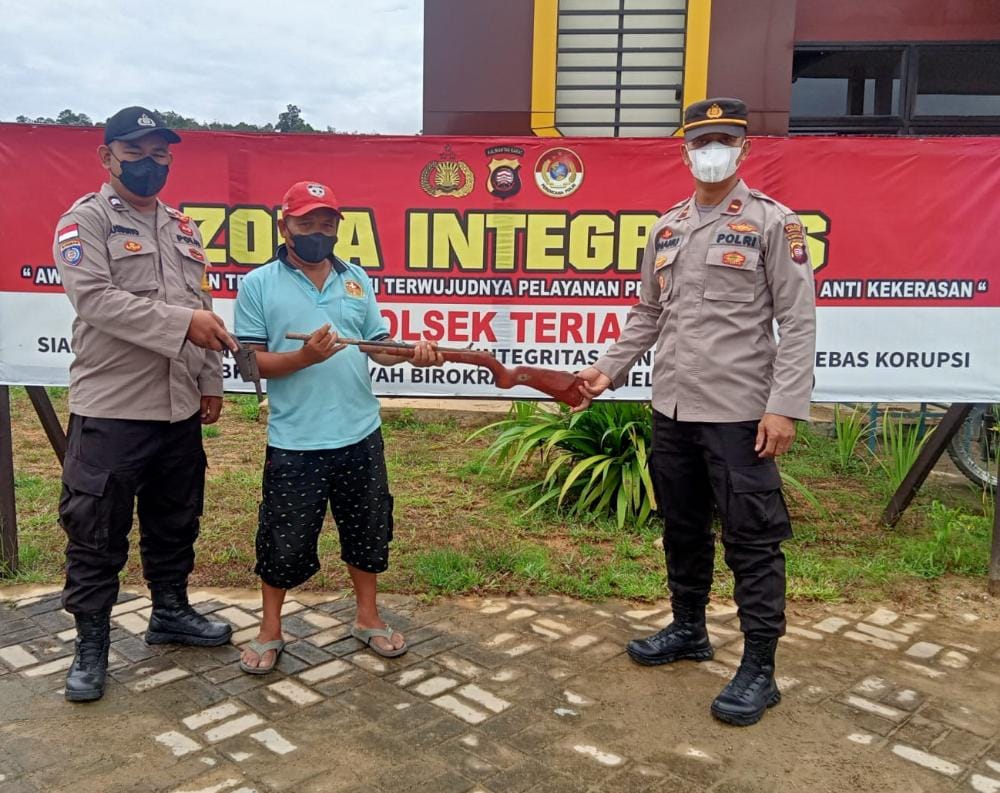 Terkait hal tersebut, Kapolsek Teriak Ipda Dwiyanto Bhanu Susilo menjelaskan, penyerahan senpi rakitan tersebut merupakan perbuatan sukarela masyarakat setelah sebelumnya dilakukan imbauan secara intens yang disampaikan oleh anggota Bhabinkamtibmas dan personil Polsek Teriak Polres Bengkayang.
