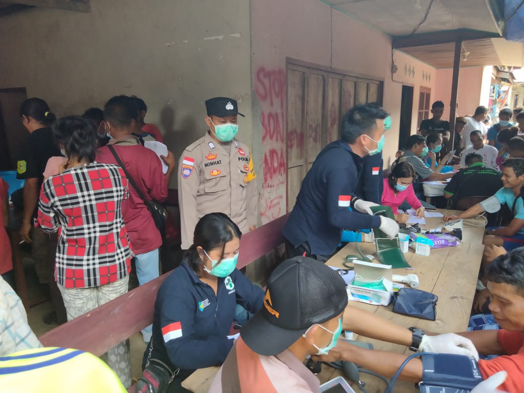 Bhabinkamtibmas Desa Sungkung 1 Polsek Siding Bripka Minhat melakukan monitoring program vaksinasi gratis kepada warga binaan dalam memberikan perlindungan dari paparan Covid-19.