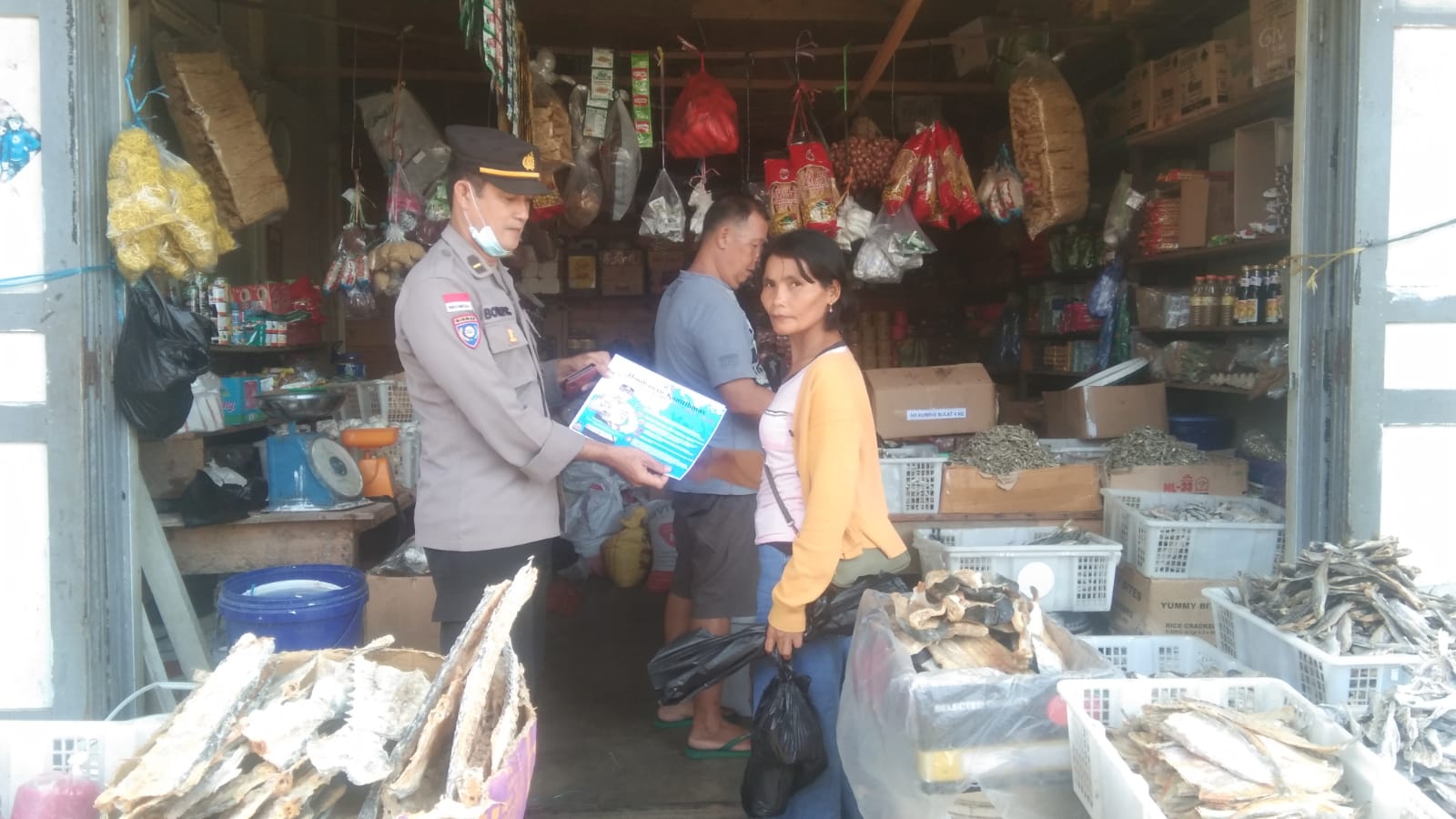 Dalam kesempatan tersebut IPDA BONI PASIUS KBO Sat Binmas Polres Bengkayang memberikan Himbauan kepada karyawan dan pemilik tokoh di pertokoan dan masyarakat yang akan belanja di toko Pasar Bengkayang agar senantiasa berhati-hati dan waspada terhadap aksi kejahatan, karna sewaktu waktu bisa terjadi, waspada pelaku pelaku pencurian dengan pemberatan, pencurian kendaraan bermotor, copet, hipnotis, dan kejahatan lainnya.