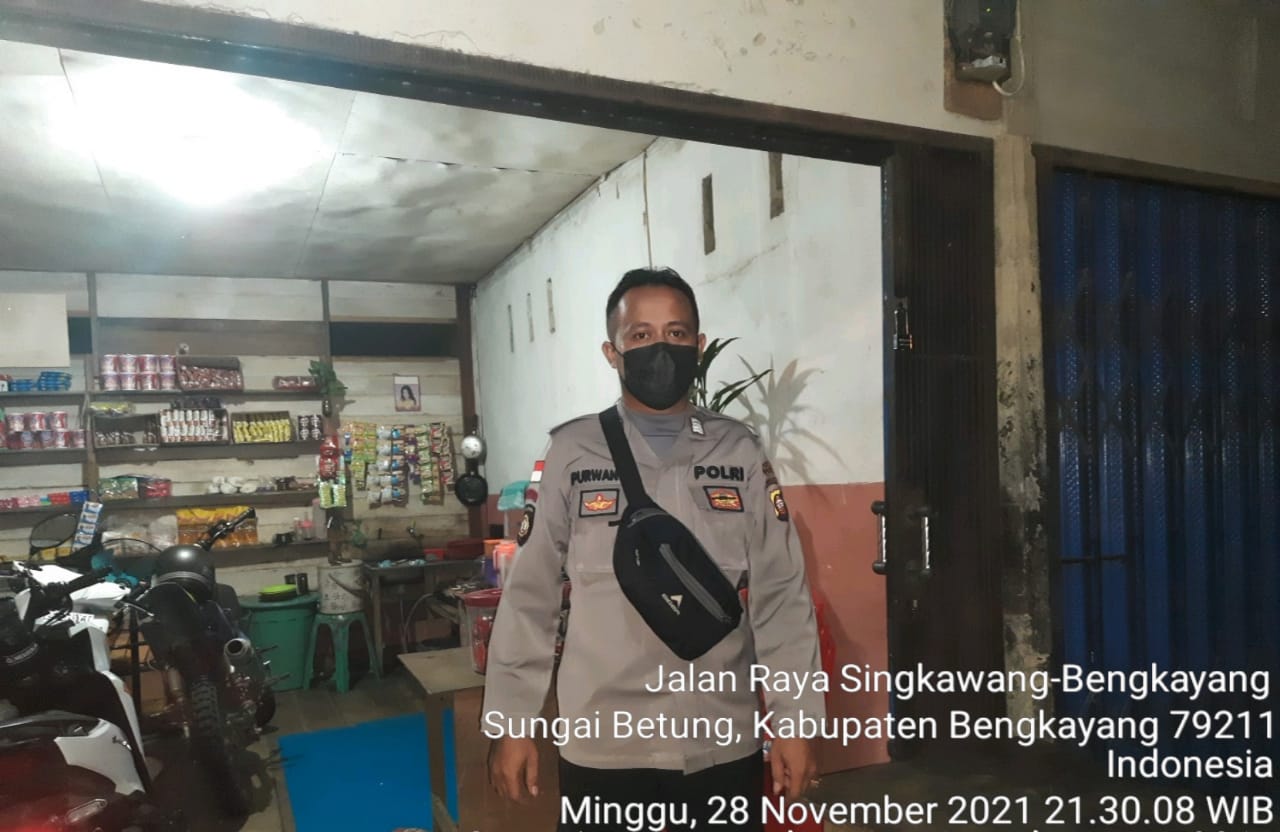Polsek Sungai Betung hari Minggu tanggal 28 November 2021 sekira jam 21.00 s/d 22.00 wib dilaksanakan PATROLI / SAMBANG / HIMBAUAN KAMTIBMAS TERKAIT PERGUB KALBAR Nomor 110 TAHUN 2020 dan PERBUP BENGKAYANG Nomor 36 Tahun 2020 yaitu KRYD (Kegiatan Rutin Yang Ditingkatkan) di Wilkum Polsek Sungai Betung.