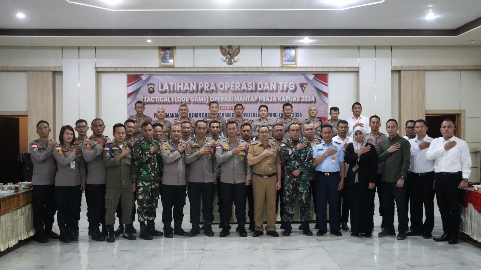 Dalam sambutannya, Kapolres menyampaikan Latihan Tactical Floor Game (TFG) Operasi Mantap Praja Kapuas 2024 ini merupakan upaya menyamakan persepsi di antara Tiga Pilar (TNI, Polri, dan Pemerintah Daerah) untuk memastikan pelaksanaan Pilkada Serentak 2024 di wilayah hukum Polres Bengkayang berjalan dengan aman, damai, dan kondusif.