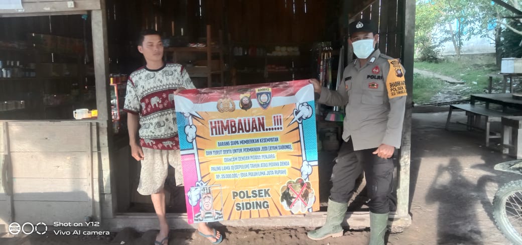 Kapolsek Siding,Ipda Bambang Rudiyanto, Mengatakan,” himbauan dan pemasangan banner larangan perjudian tersebut bertujuan untuk mengingatkan masyarakat agar menjauhi perjudian karena bila terlibat bisa dihukum dengan ancaman maksimal 10 tahun penjara, sehingga dengan adanya kegiatan ini diharapankan kita tidak