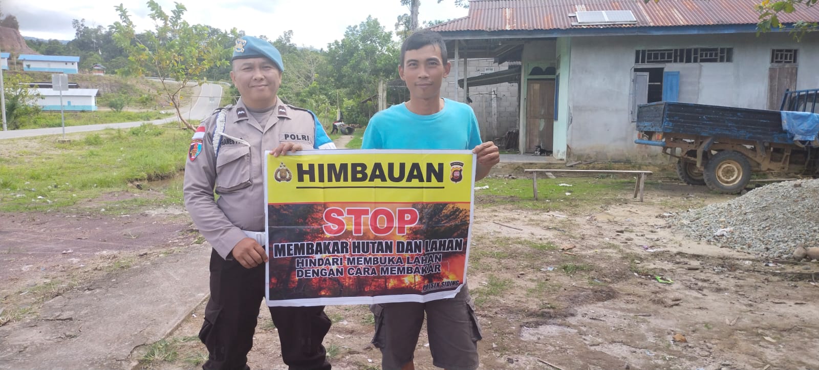 Polsek Siding Polres Bengkayang Polda Kalbar himbau dalam rangka Cegah Kebakaran Hutan dan Lahan di kecamatan Siding. Jumat (10/02/23).