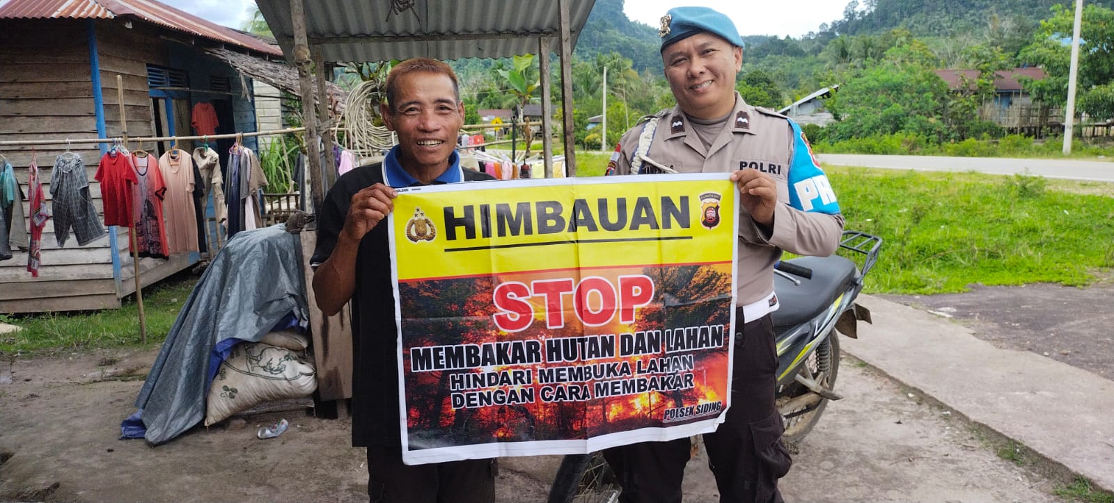 Polsek Siding Polres Bengkayang Polda Kalbar himbau dalam rangka Cegah Kebakaran Hutan dan Lahan di kecamatan Siding. Selasa (21/3/23).