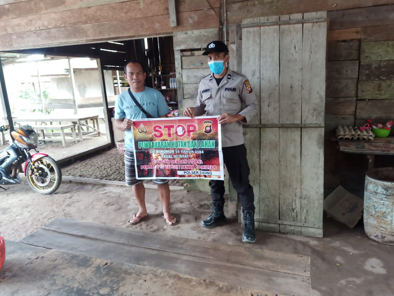 Personil Polsek Siding jajaran Polres Bengkayang Polda Kalbar melakukan himbau Stop Karhutla pada kegiatan sambang , Selasa (10/02/23).
