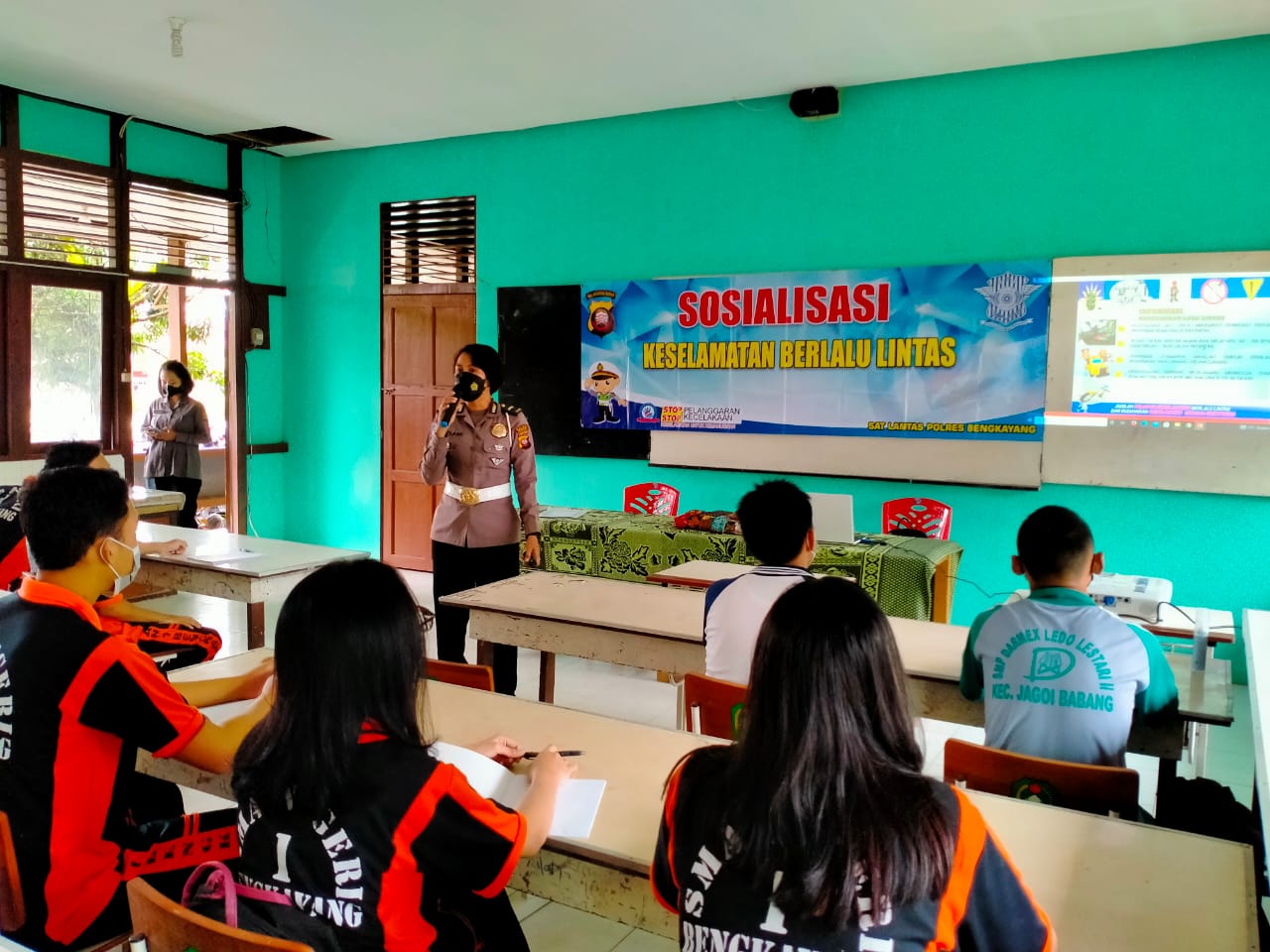 “Kami hari ini melakukan sosialisasi dan penyuluhan terkait keselamatan berlalu lintas di SMAN 1 Bengkayang. Kami atas nama kepolisian berterima kasih atas kesempatan yang diberikan oleh pihak sekolah untuk melakukan sosialisasi tertib berlalu lintas kepada pelajar”, kata Ipda Pariani.