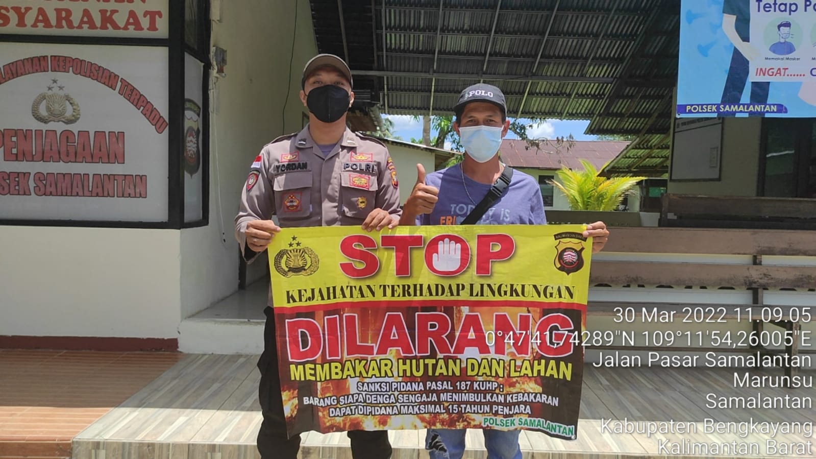 Seperti yang dilakukan Anggota Polsek Samalantan, Bripda Yordanus yang menyosialisasikan larangan karhutla kepada masyarakat Desa Samalantan Kecamatan Samalantan pada Rabu 30 Maret 2022 pagi.