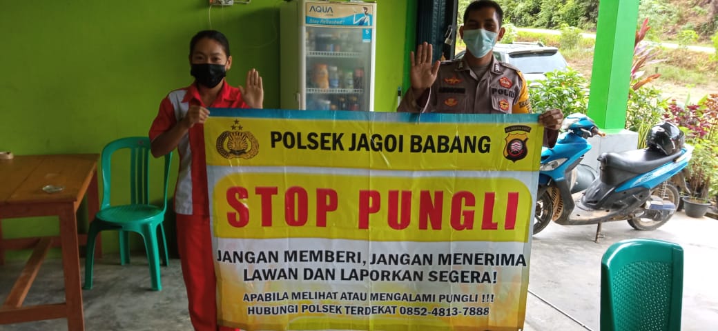polres bengkayang, Brigadir anggong menyampaikan sosialisasi pungli dengan mengajak warganya tidak pungli serta melaporkan pungli kepada polsek jagoi babang